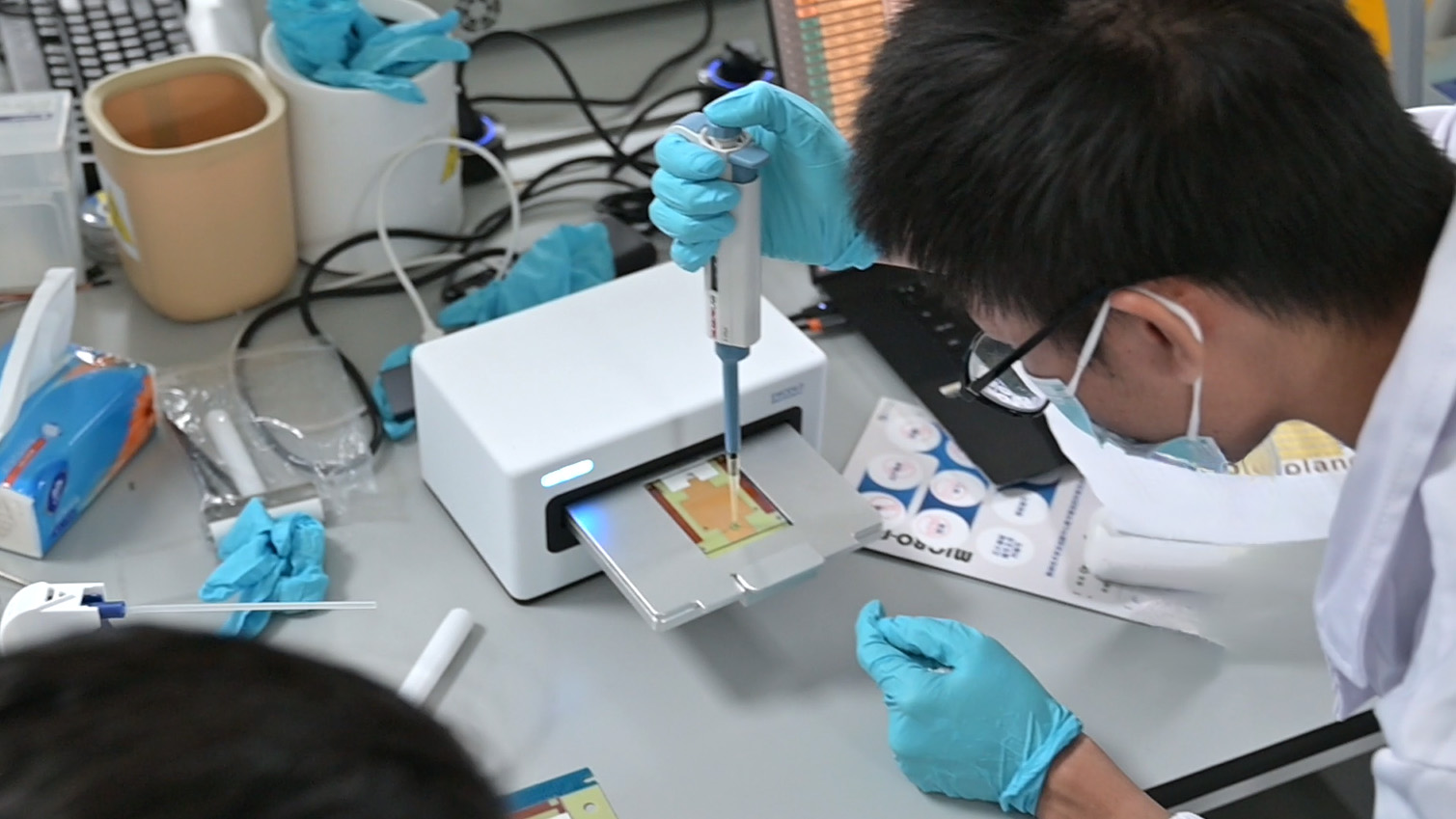 数字微流控技术,作为一种前沿的科学技术,近年来在生物医学、环境监测、药物研发等领域展现出巨大的应用潜力。为了让学生了解这一技术,培养他们对科学的兴趣, 微纳中心主任赵蒙研究员带领工程师团队,为此次活动进行现场讲解及操作演示。